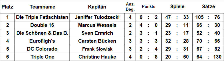 bezeichnet eine Dartmannschaft, mehrere Spieler die zusammen auf einen Score spielen oder ein Doppel(team).