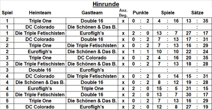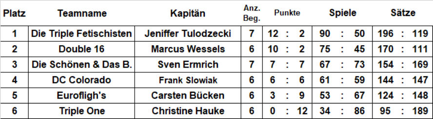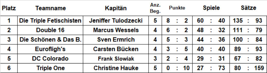 bezeichnet eine Dartmannschaft, mehrere Spieler die zusammen auf einen Score spielen oder ein Doppel(team).