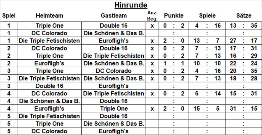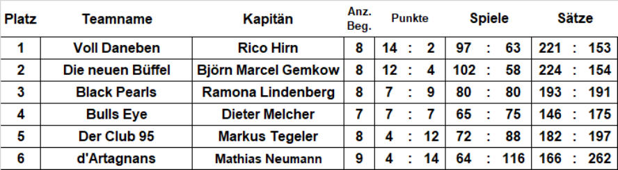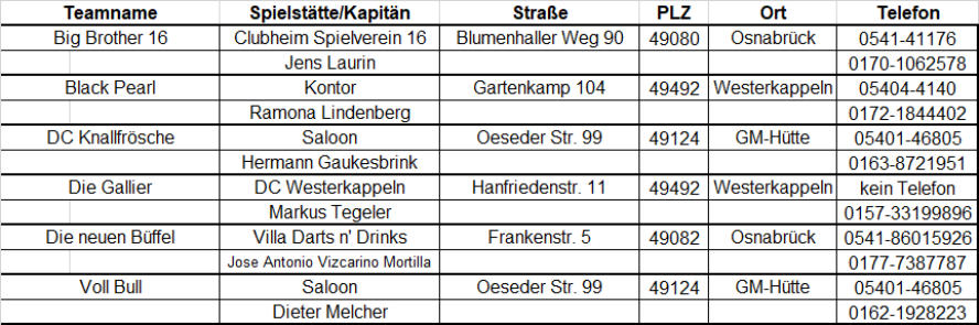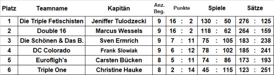 bezeichnet eine Dartmannschaft, mehrere Spieler die zusammen auf einen Score spielen oder ein Doppel(team).