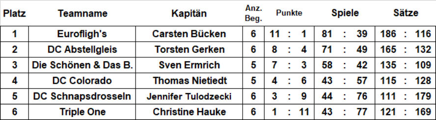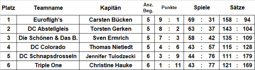 bezeichnet eine Dartmannschaft, mehrere Spieler die zusammen auf einen Score spielen oder ein Doppel(team).